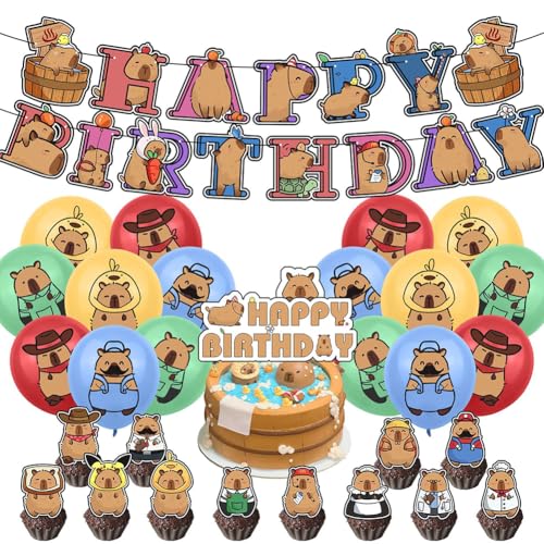 HGSHUO Födelsedagsdekoration Capybara luftballong, tårtdekoration, djur, ballong, girlang, Happy Birthday-banner, barnfödelsedag, födelsedagsdekoration, babyshower