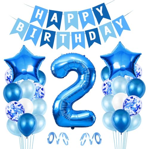 Ballong 2. Födelsedag blå – Happy Birthday-folieballong, jätte folieballong nummer 2, ballongdekoration, födelsedagsdekoration pojkar 2 år