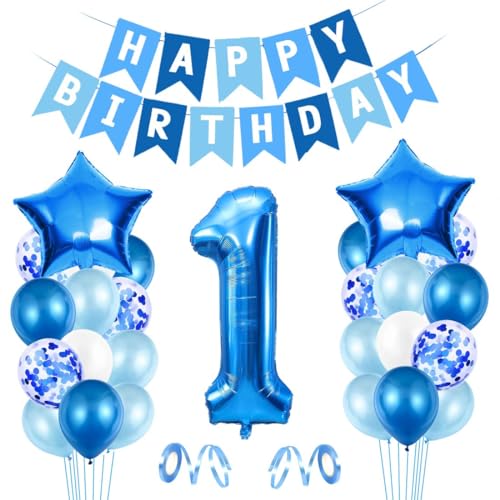 Ballong 1. Födelsedag blå – Happy Birthday-folieballong – jätte folieballong nummer 1 – ballongdekoration för födelsedag – födelsedagsdekoration pojkar 1 år