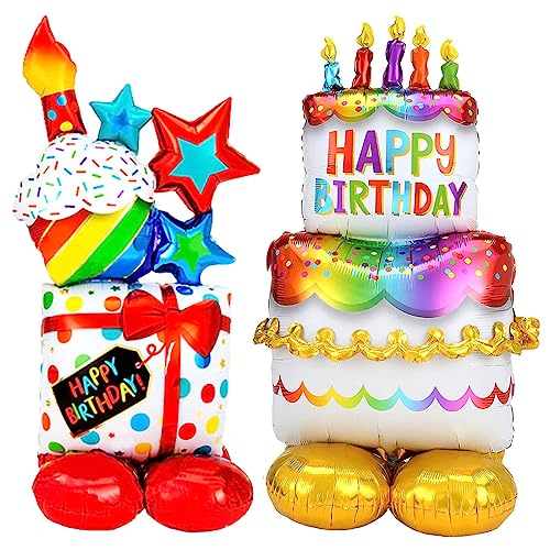 Folieballong, Happy Birthday-ballong, stående, födelsedagsballonger, uppblåsbara tårtor och present, heliumballong, födelsedagsfest, dekoration för barn, pojke, flicka och vuxna