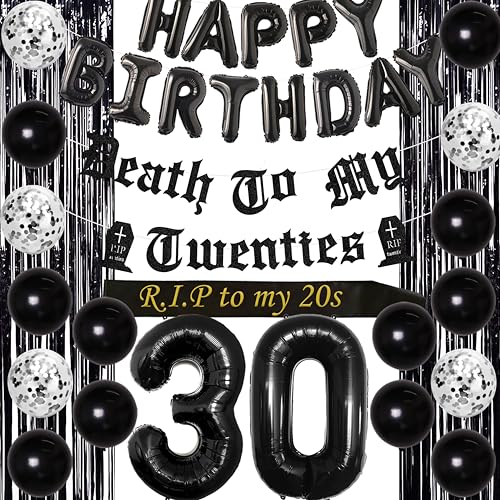 Funmemoir 30:e födelsedagsdekorationer för honom hennes svarta död till min tjugotio-banderoll Rip to My 20-tal skärp nummer 30 Happy Birthday ballong banderoll folie gardin för roliga trettionde