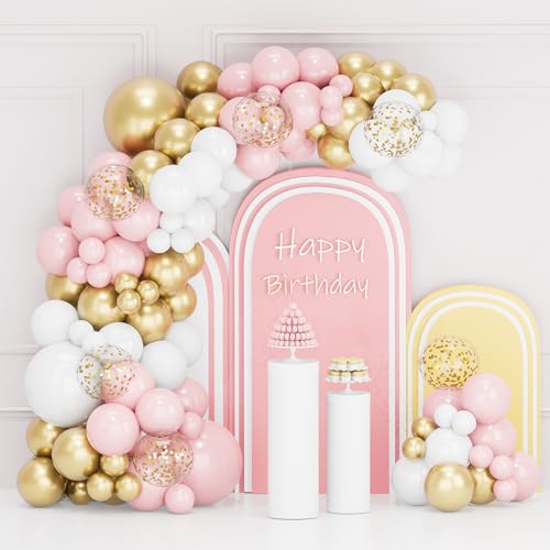 Rosa och vit ballongbåge-kit, 105 st rosa och guld ballonggirlang med pastell roséguld konfettiballonger för flickor födelsedag baby shower bröllop möhippa prinsessa festdekorationer