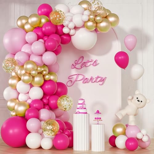 Ballongbågskit med chockrosa ballonger, ballongbåge med rosa och roséguldfärgade ballonger samt konfettiballong, ballonggirlang för födelsedagsdekorationer, babyshower, dopdekorationer, möhippa