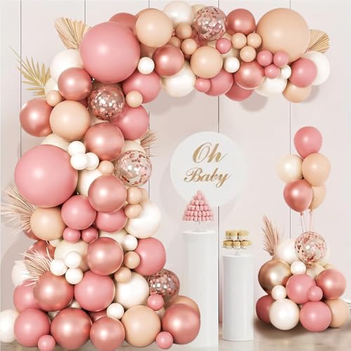 LUOBITO Dammig rosa ballongbåge-kit, 148 st boho rodnad rosa brun naken vit ballonger girlang, konfettilatexballonger för flickor bröllop födelsedag pastoral fest picknick brud dusch dekorationer