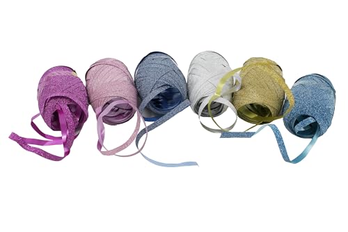 Bright Ideas Locktingband för ballonger och locktband för presentförpackning, ballongband, ballongsträng, paket med 6 blandade glitterfärger guld/silver/rosa/ljusblå/persika/mörkblå, 6 x 10 m