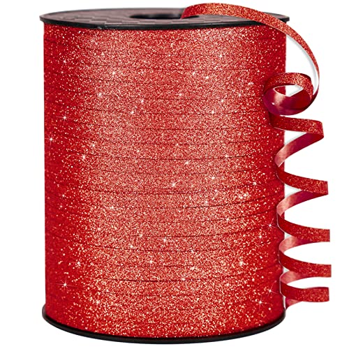 PartyWoo Rött band, 500 Yard curlingband för hantverk, ballongband, glitterband för presentförpackning, band för ballongsträng, jul curlingband (1 rulle)