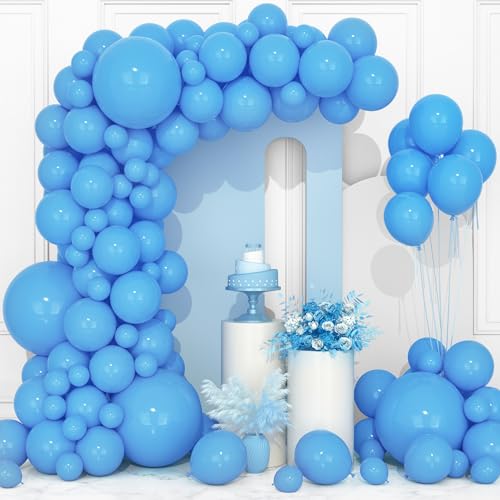 Sats med girlang/båge med 106 blå ballonger, 13/25/30/46 cm, ljusblå, himmelsblå latexballonger med ballongband, kedja, för flickor, pojkar, män, kvinnor, bröllop, födelsedagsfest, examen, dekoration