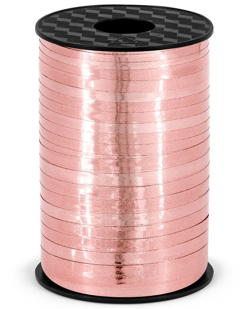 225 meter Metalliskt roséguldfärgat ballongband / presentband - 5 mm brett