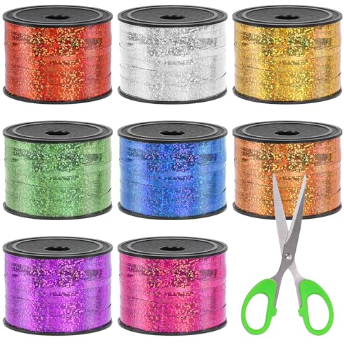 Swpeet 9 st 1/5 tum bred x 100 meter metalliskt curlingband med sax-kit, 8 färger veckat curlingband ballongband presentpapper för presentinslagning fest festival konst dekoration tillbehör
