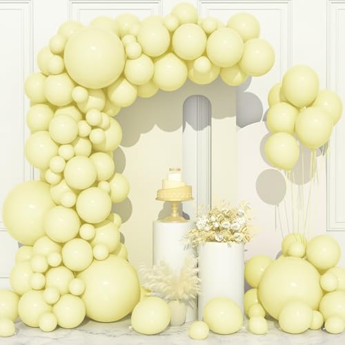 Sats med girlang/båge med 106 gula ballonger, 13/25/30/46 cm, makrongula, ljusgula latexballonger med ballongband, för flickor, pojkar, födelsedagsfest, solros, utomhusdekoration, bröllop, picknick