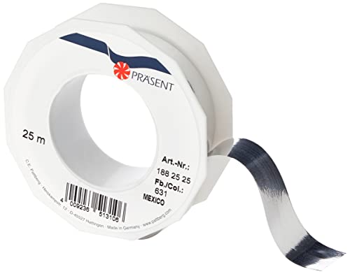 PRÄSENT C.E. Pattberg Mexiko metalliskt presentband, silver, 27 meter ballongband för presentförpackning, 1 tum bredd, tillbehör för dekoration och hantverk, dekorationsband för presenter, 25 mm – 25