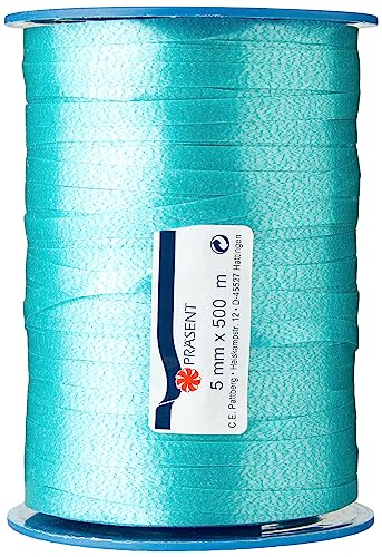 C.E. Pattberg Amerika presentlocktängband turkos, 546 meter ballongband för presentförpackning, 0,5 cm bredd, tillbehör för dekoration och hantverk, dekorationsband för presenter