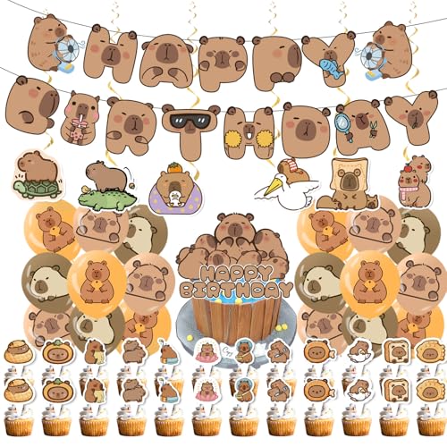 50 st capybar födelsedagsdekoration, Capybara barnkalas- och tårtdekoration, ballonger, banderoller, spiral, födelsedagsfest tillbehör för pojkar och flickor