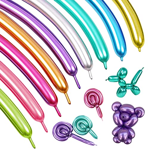 Metallballong, modelleringsballong, lång ballong, 100 st, skulptur magiska ballonger, latexballonger, latexballonger, för barnkalas, clownlek, aktivitet