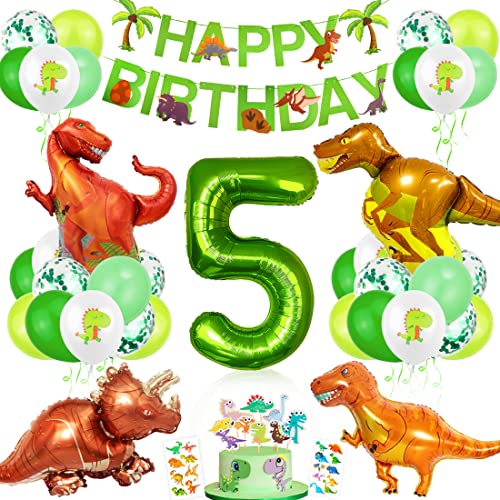 Dino Barnkalas dekoration, födelsedagsdekoration 5 år pojkar, dinosaurier födelsedagsdekorationer, folieballong nummerballong 5, ballonger grön för dinosaurier, party dekoration, djungel-party, barn