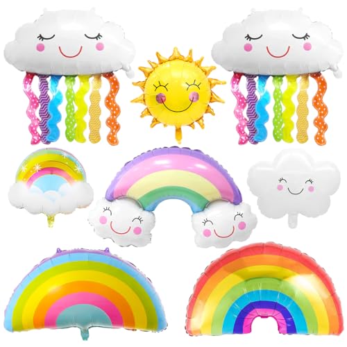8 st regnbågsformade ballonger, folieballong moln, XXL tofsboll aluminiummoln, leende sol moln ballonger för barn födelsedag baby shower festdekorationer