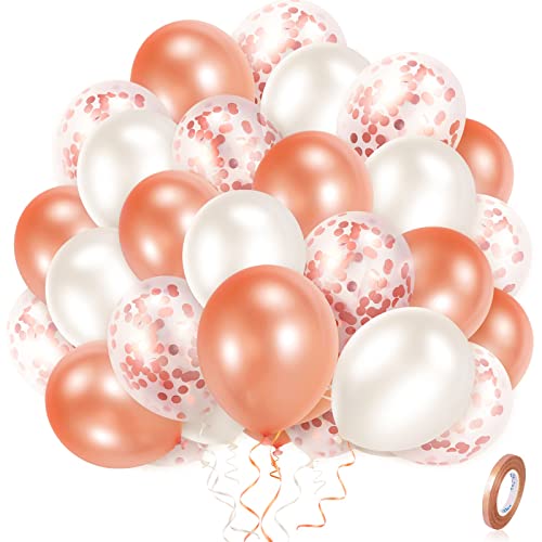 JOYUE 50 stycken roséguld ballonger, konfettiballong, för födelsedag, bröllop, examen, babyshower och festdekorationer 30 cm