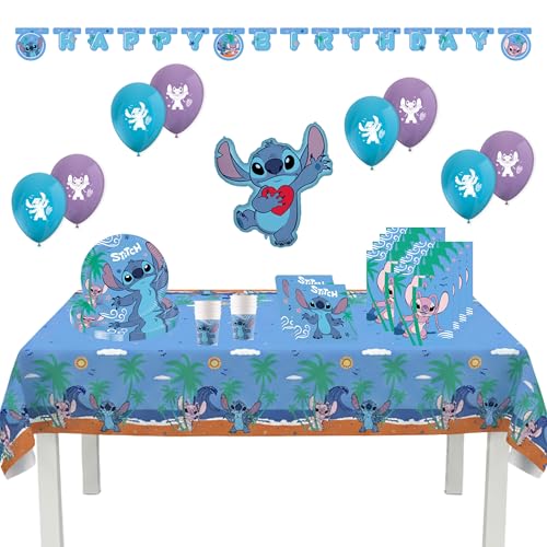 Procos – Födelsedagsdekorationssöm, set med 55 delar, innehåller 8 papperstallrikar, 8 pappersmuggar, 20 servetter, bordsduk, girlanger, 8 ballonger, folieballong, 8 festpåsar, bordsdekoration för