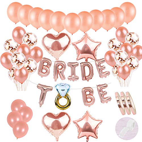 58 stycken JGA dekorativa ballonger roséguld set: helium bokstäver folieballonger bride To BE banderoll & 30 latexballonger & 15 konfettiballong & 4-stjärnor, hjärtballong för dotter, flicka, farväl
