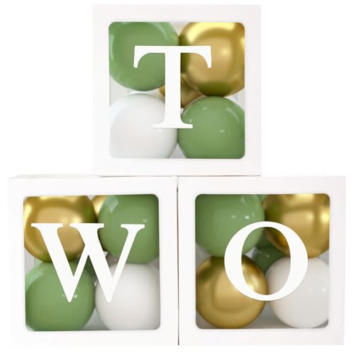 2:a födelsedagskalas dekorationer för pojkar, 3 st ballonglådor med 30 grönguld vita ballonger och ONE bokstäver, ballongblock för 2. Födelsedagsbakgrund, 2 år gammal födelsedagsfest dekorationer