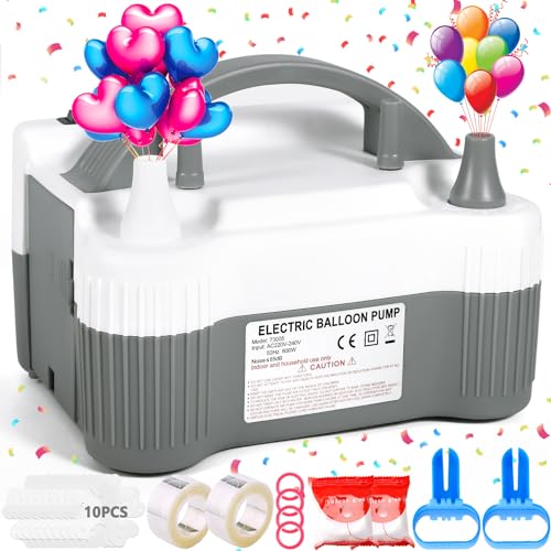 MOOING Ballongpump elektrisk, födelsedagsballongpump 600W, ballongpump luftpump med dubbelt munstycke, bärbara ballongpumpsballonger för festivaldekoration, födelsedag, fest