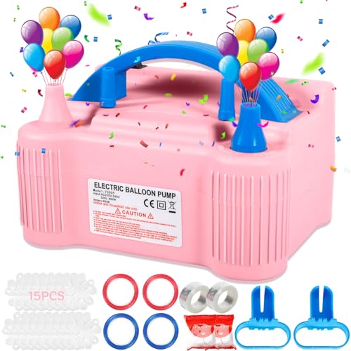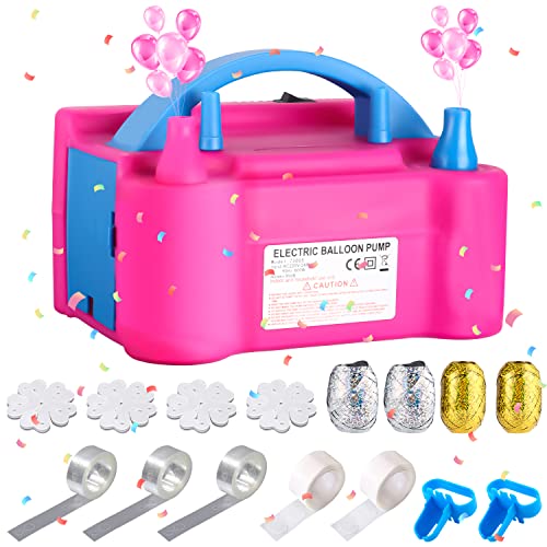 AOUVT Elektrisk ballongpump, 600W ballongpump, dubbel munstycke elektrisk ballongpump, bärbar ballongpump för karnevaler, fester och bröllop - rosa