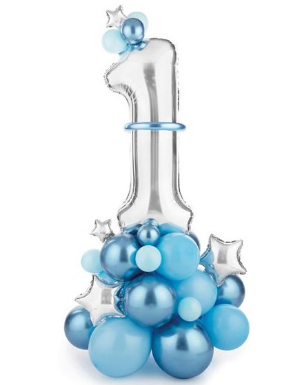 Blå och Silvrig "1" Ballongset - 50 Deler 90x140 cm