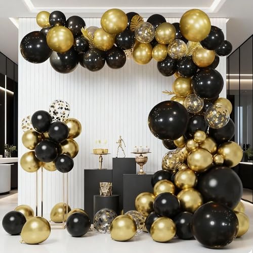 SANERYI Ballonger i guld, svart, girlang, 140 st, konfettiballongbåge, metallisk födelsedag, ballongset för bar, dekoration, examen, bröllop, jubileum, babyparty, bakgrund, dekorationer