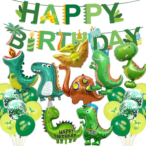 Dino Födelsedagsdekorationsset, dinosauriedekoration barnfödelsedag, fest barnfödelsedag, dinosaurie födelsedagsdekoration pojkar, grön ballongset för fest djungel barn, barns födelsedagskalas
