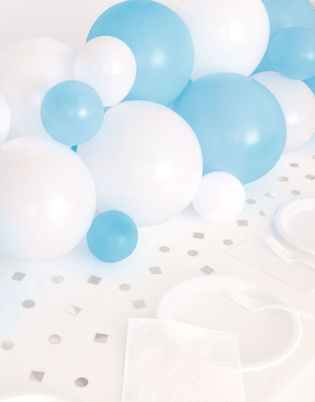 Blått och Vitt Ballongset med Foliekonfetti 41 Delar