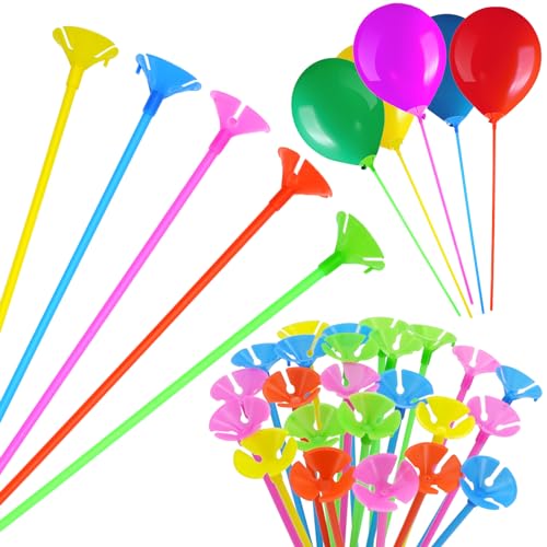 Ballongkoppar, stänger, 100 ballongställ, plast, ballongstavar, återanvändbara, ballongstavar, flerfärgade, för dekoration, födelsedagsfest, bröllop, tillbehör, semester, heminredning