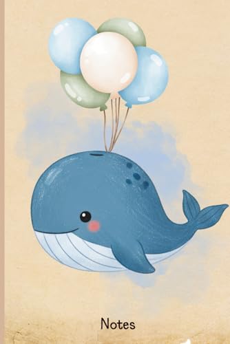 Cute Watercolor Ocean Notebook: Balloon Whale Design – Aesthetic Blank Pages for Notes, Journaling & Sketching (6x9, 120 Pages): Blank Notebook With Numbered Pages