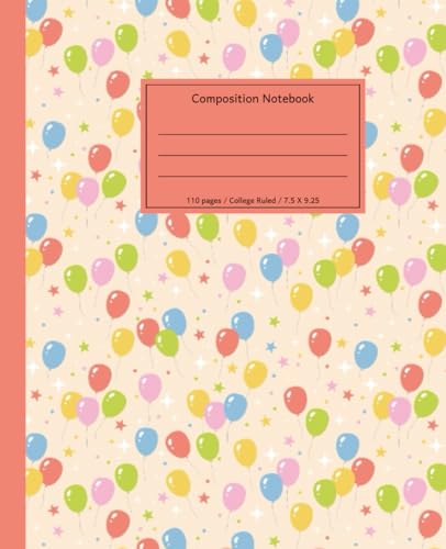 Colorful Balloon Composition Notebook: Fun Birthday & Celebration Pattern | Aesthetic College Ruled Journal | 110 Pages, 7.5 x 9.25 Inches