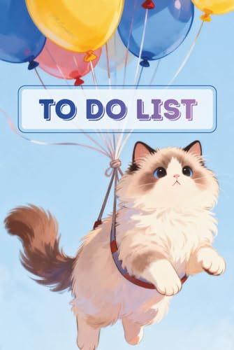 Colorful Balloon-Flying Fluffy Cat To Do List Planner: 6x9 Inch Daily Task Organizer (86 Pages)
