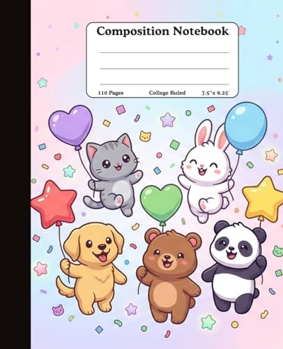 Composition College Ruled Notebook | 110 Wide Lined Pages | 7.5 x 9.25 Inch Size | Cute Animals Balloon Pattern Notebook Journal for School Supplies, Kids, Students & Animal Lovers | Perfects of Gifts