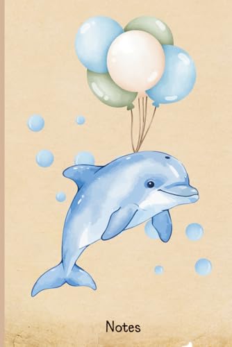 Cute Watercolor Ocean Notebook: Balloon Dolphin Design – Aesthetic Blank Pages for Notes, Journaling & Sketching (6x9, 120 Pages): Blank Notebook With Numbered Pages
