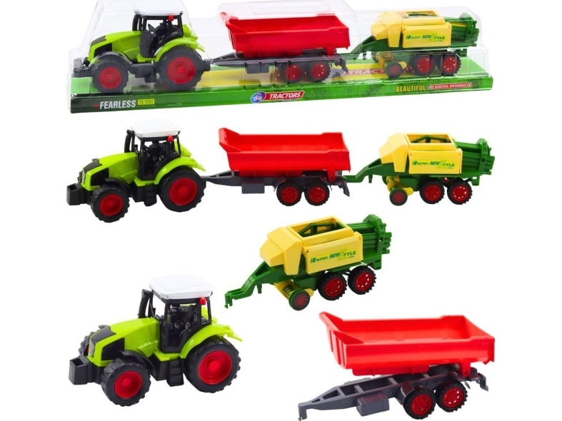 Set Jordbrukstraktor Släpvagn Balpress Jordbruksmaskin