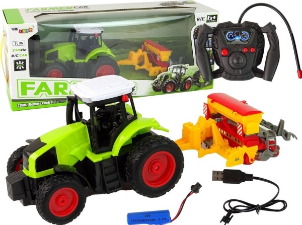 Leantoys Jordbruksfordon Traktor Med Balpress R/C 1:16 Grön
