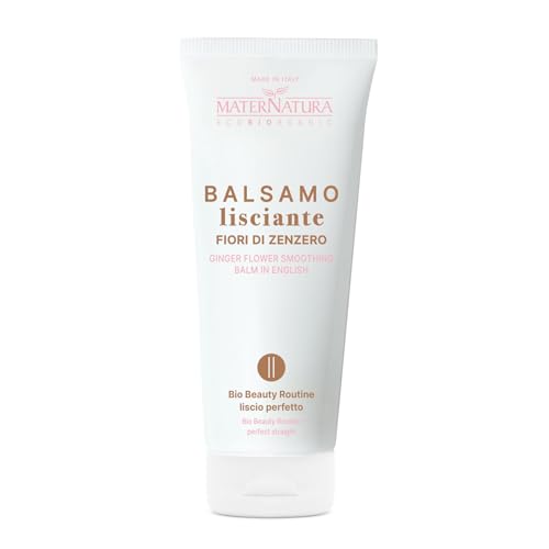 Maternatura, utjämnande balsam för rakt hår med ingefärablommor, reder ut effekt och långvarigt rakt hår, ekologisk skönhetsrutin för perfekt jämnhet, tillverkad i Italien – 250 ml