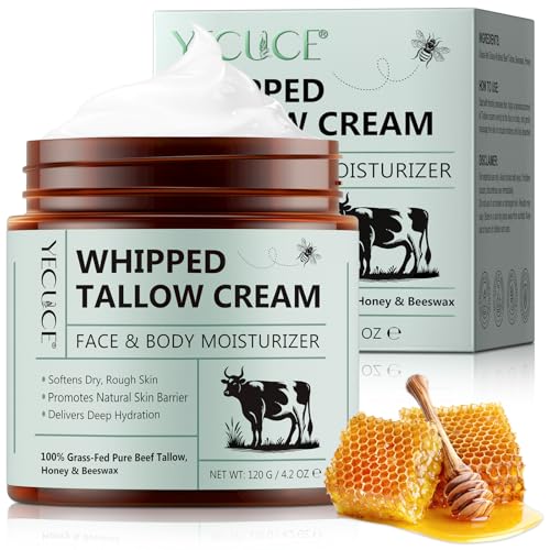 Beef Tallow Cream 120 g, nötkött talg för hudvård, nötkött talg och honungsbalsam, talgansiktskräm, ekologisk gräsfodrad slog balsam, kroppskräm, djuphydrering för ansikte och kropp