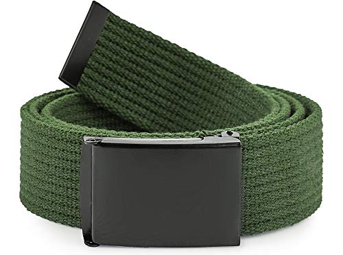 LionVII Elastiskt bälte för män, 130 cm stretchbälte med plastspänne, bälte i 2 samtidiga färger, Svart och armégrön, L
