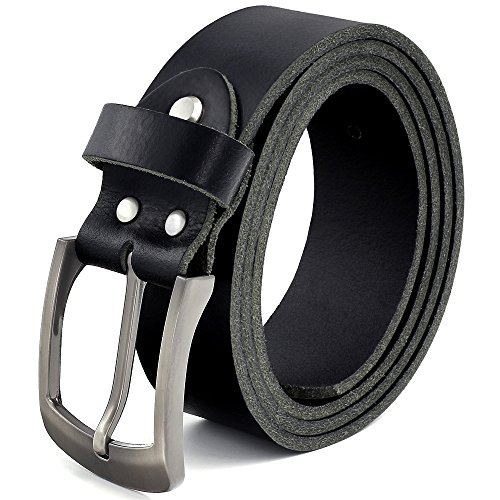 BELTER Läderbälte Herrbälten Läder Bälte Jeans Buffelläder 110cm-160cm Stor Storlek,38 mm Brett (130CM, Svart)