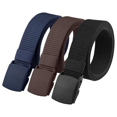 Huiguli bälte i nyloncavas, 3 st arbetsbälten för män, justerbart bälte i nylontyg med metallfritt spänne för enkel flygplatssäkerhet, perfekt för flera tillfällen, 3,8 x 150 cm, 25