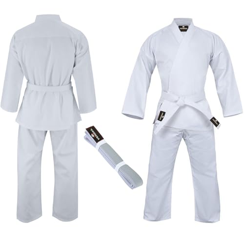 VERSAL Karate Gi för barn/vuxna karate-uniform | student vit karatedräkt | 8 oz lätt polybomull kampsport träning sparring Taekwondouniform med bälte, Vitt, 170 cm