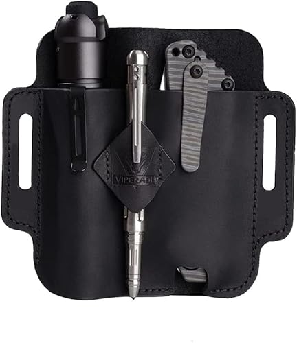 VIPERADE PJ19 läder EDC läderslida väska organiserare med nyckelring, bältesögla och pennhållare för ficklampa, utomhus och camping, svart
