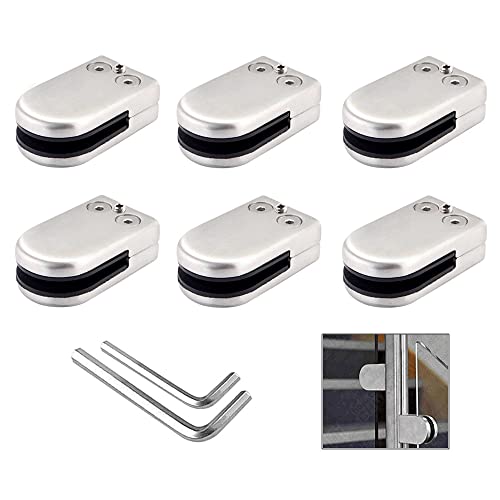 QitinDasen 6 Stycken 6~8 mm (S Storlek) Glasklämmor, 304 Rostfritt Stål Glasklämma, Justerbar Glasklämma Hållare Platt Baksida, for Trappa Balustrad Ledstång (Silver)