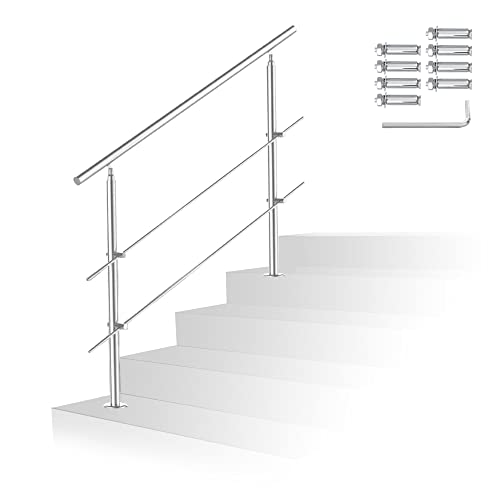 Froadp 150cm Trappa Ledstänger i Rostfritt Stål Robust Trappräcke med 2 Stolpar Säkerhetsräcke för Inomhus- och Utomhusbruk Balustrad Trädgårdsentréer för Trappor Balkong Terrasser (5 Tvärstänger)