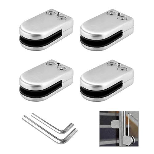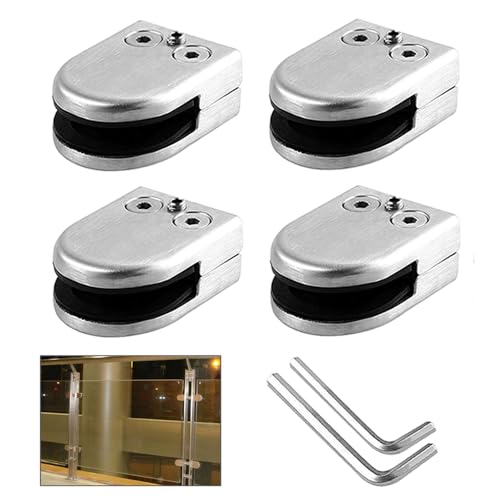 QitinDasen 4 Stycken 6~8 mm (S Storlek) Glasklämmor, 304 Rostfritt Stål Glasklämma, Justerbar Glasklämma Hållare Platt Baksida, for Trappa Balustrad Ledstång (Silver)