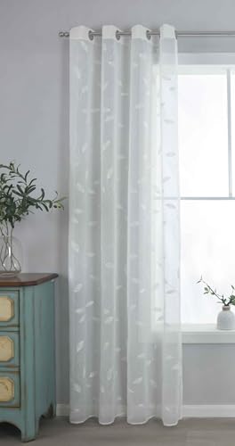 Gardin linneutseende H x B 245 x 140 cm vit metallöljetter "Bamberg" delikat broderi bladmönster ljusgenomsläppligt lättskött 2023495