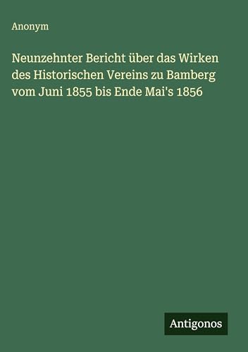 Neunzehnter Bericht über das Wirken des Historischen Vereins zu Bamberg vom Juni 1855 bis Ende Mai's 1856